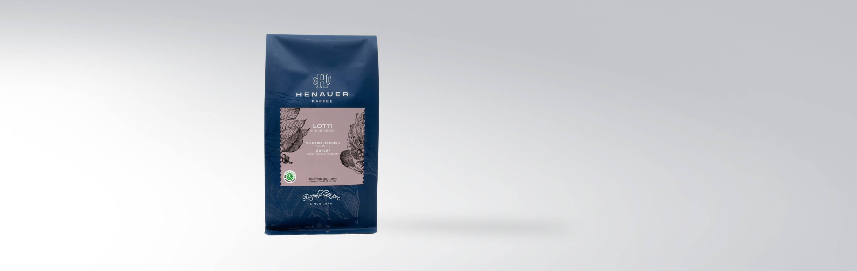 Verpackung von Henauer Kaffee Lotti mittlere Röstung, ein Kaffee aus 70% Arabica und 30% Robusta