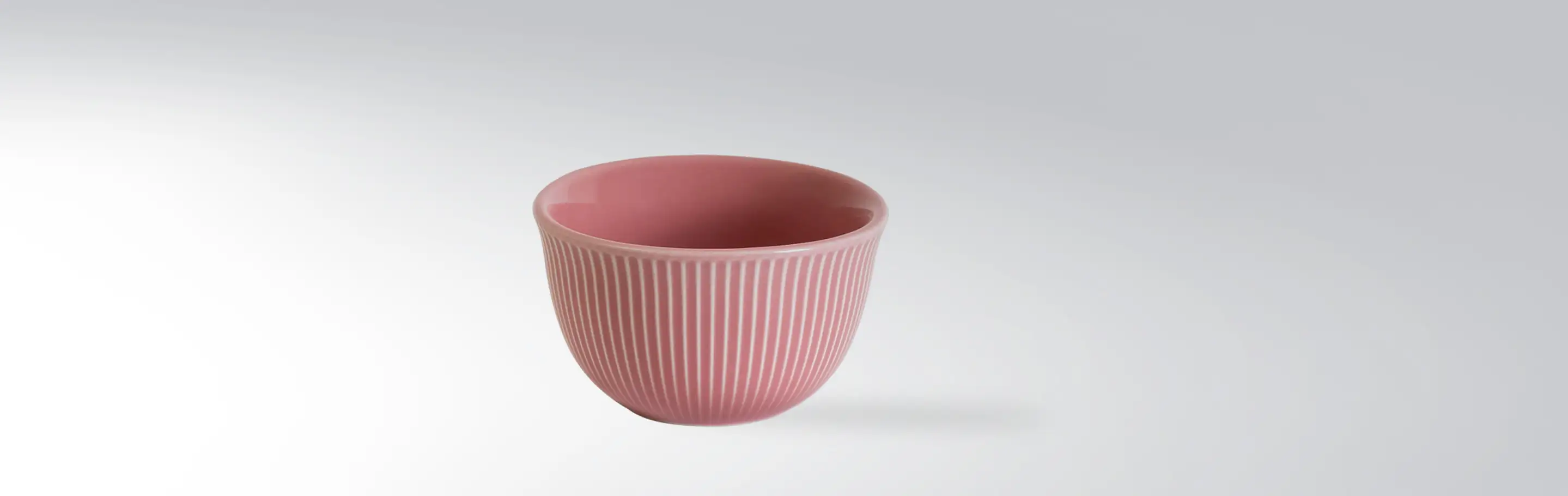 Erhältlich in drei Grössen und vier ausdrucksstarken Farben, sind sie ein Muss für alle, die Kaffee mit Stil geniessen möchten. Diese pinkfarbige Boram Um Tasting Tasse in der Grösse 120ml ist die mittlere der Reihe.