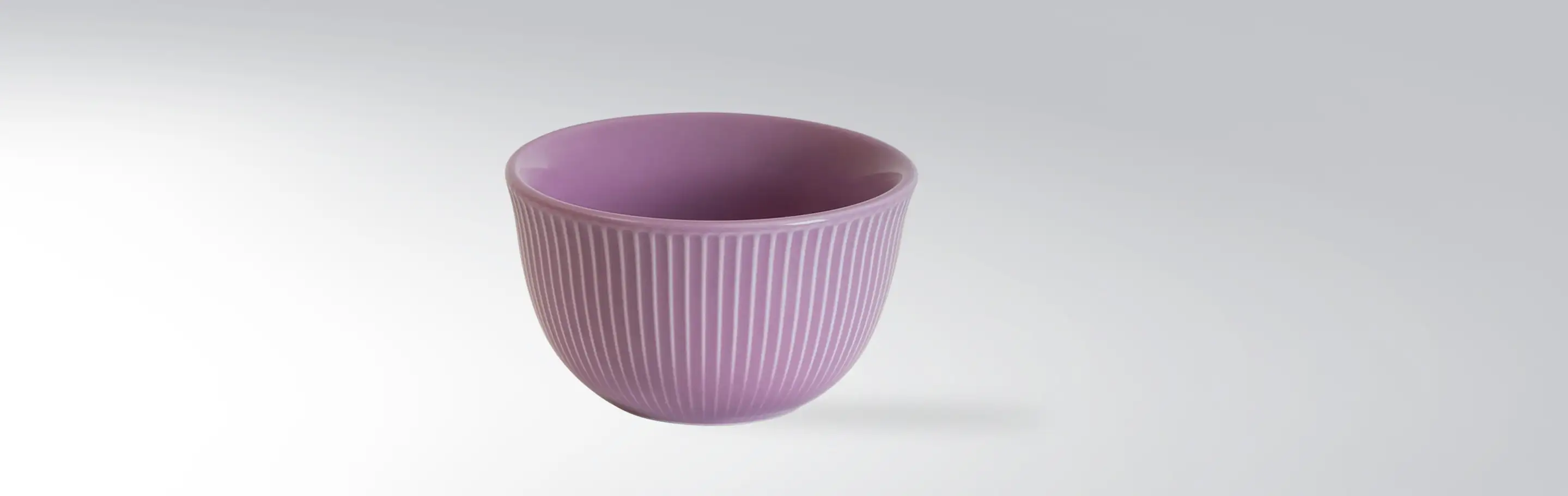 Erhältlich in drei Grössen und vier ausdrucksstarken Farben, sind sie ein Muss für alle, die Kaffee mit Stil geniessen möchten. Diese violette Boram Um Tasting Tasse in der Grösse 120ml ist die grösste der Reihe.