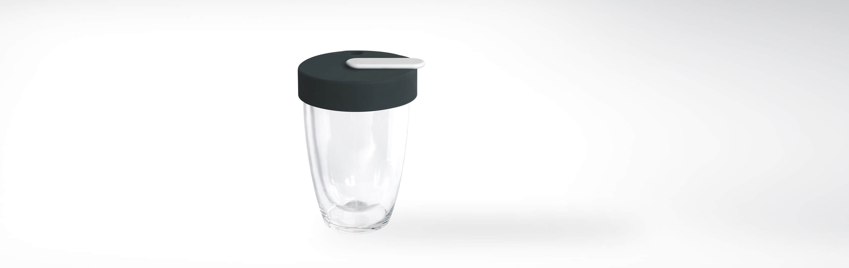 Bei der Kaffeezentrale ist der Kaffeebecher in verschiedenen Farben erhältlich: mint, taupe, schwarz und transparentes Glas.
